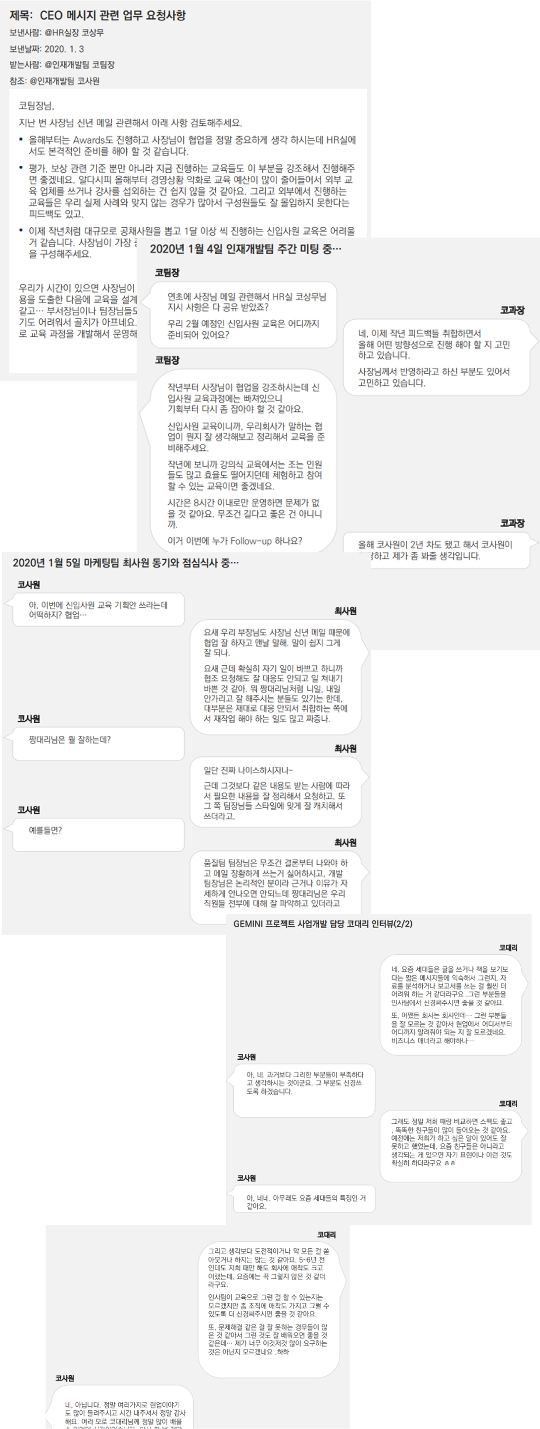 실제로 현업에서 업무를 수행할 때, 업무 요청 이메일을 통해 업무를 전달받기도 하고, 이전에 진행했던 업무들의 자료(회의록 및 결과보고 등)을 검토하여 추진 방향을 수립하기도 합니다.